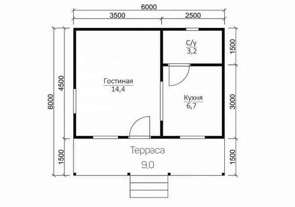 Каркасный дом 4.5х6 одноэтажный с террасой 1,5×6 под ключ